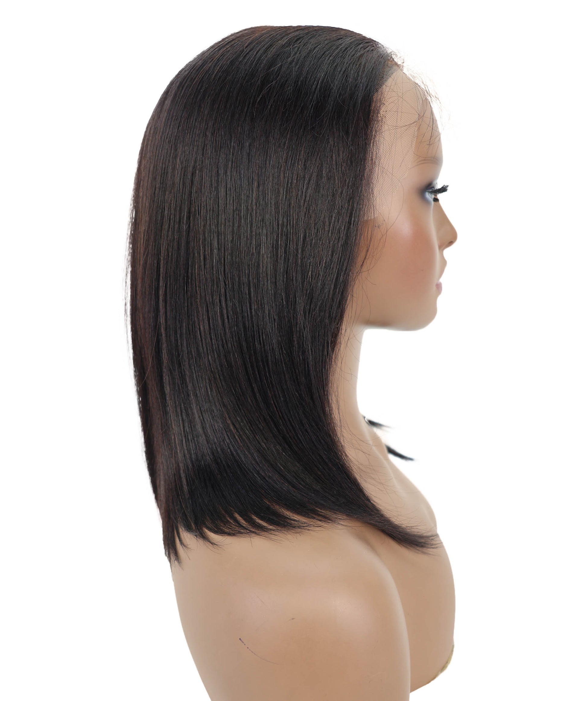 Introducing the Sade Wig, a chic and timeless straight lace wig crafted from 100% premium human hair. Measuring 14.5 inches, this sleek wig offers a silky-smooth texture that flows effortlessly for a polished, natural look.
